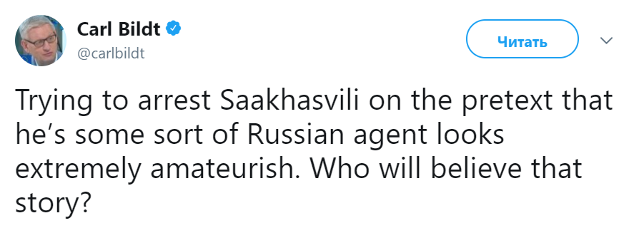 "Новости из Украины явно тревожат. Политические аресты радикально уменьшат авторитет страны на Западе. Это проблема безопасности в конце концов", - написал Бильдт, комментируя задержание Михо.