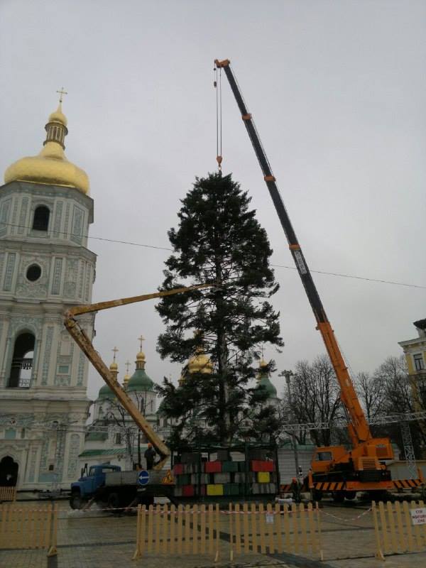 "На Софийской площади в Киеве уже установили главную елку страны. Пока она, невзрачная, так как не украшена. С этим придется подождать до ближайшего воскресенья. Сейчас у ветви ели остаются не развязанными, поэтому дерево кажется куцым. Если сейчас развязать ветки, то увеличится парусность и ухудшится устойчивость дерева"- сказано в сообщении.