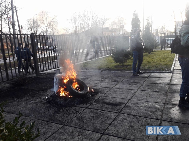 Утром 8 декабря в Черкассах несколько десятков активистов пикетировали Дом правосудия. Они подожгли шины во дворе и завязали цепью ворота, перекрыв выход, передает vikka.ua.