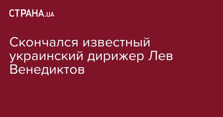 В Киеве на 93-м году жизни умер известный украинский дирижер, экс-директор киевского оперного театра Лев Венедиктов. Об этом сообщил в Facebook его ученик Сергей Подмогильный.