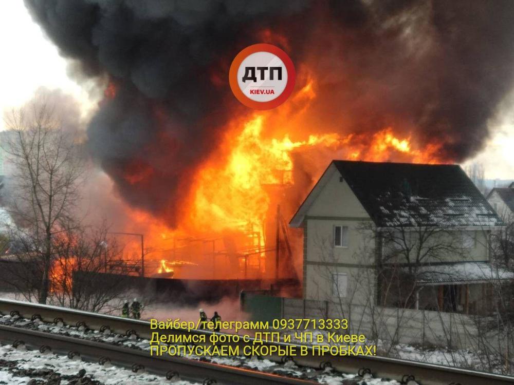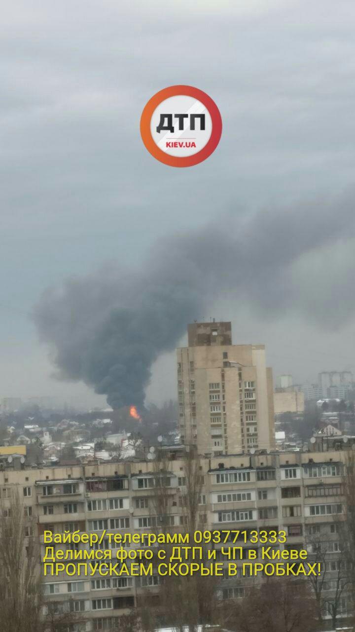 В Киеве на Русановских садах горит 4-этажный дом. Над городом - столб дыма