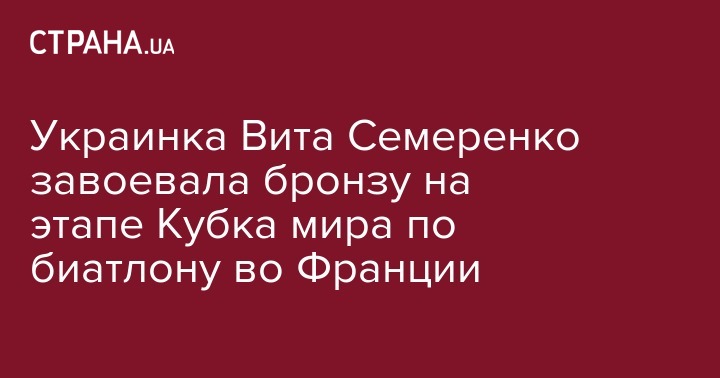 Украинская биатлонистка Вита Семеренко, которой, как сообщали в СМИ, хотели испортить допинг-пробы, завоевала бронзовую медаль на этапе Кубка мира во французском Анси.