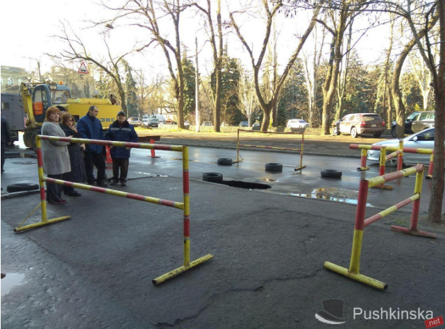 Провал огородили. Глубина образовавшейся ямы - около 4 метров. На месте работают сотрудники "Инфоксводоканала" и КП "Теплоснабжение города Одесса".