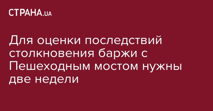 "У опоры 13 декабря произошел инцидент с грузовым судном… Балансодержатель сооружения КП "Киевавтодормост" вместе с Научно-производственным предприятием "Мостовой центр" после происшествия провел предварительное исследование Паркового пешеходного моста. Разрушения сооружения не обнаружены", - сообщила в пятницу пресс-служба Киевской горгосадминистрации со ссылкой на КК "Киевавтодор".