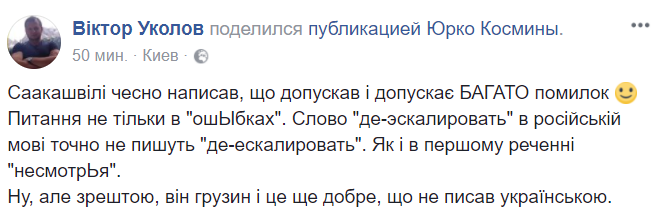 "Саакашвили честно написал, что допускал и допускает много ошибок. Вопрос не только в "ошЫбках"", - пишет политтехнолог Виктор Уколов.