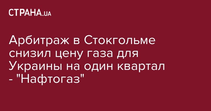 Стокгольм снизил цену природного газа, который украинская компания покупала у "Газпрома" во втором квартале 2014 года, с 485 долл. за тыс. куб. м (контрактное значение) до 352 долл. за тыс. куб. м (рыночное значение).