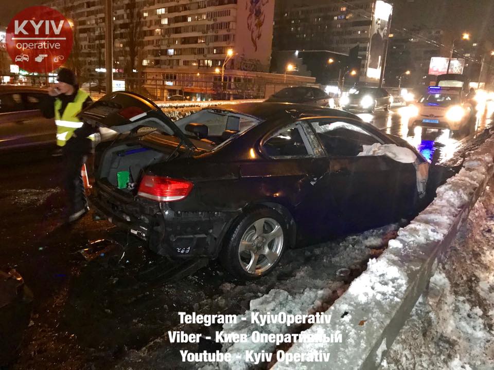 По предварительным данным, водитель автомобиля BMW, двигаясь в направлении Голосеевский проспекта от станции метро Дружбы Народов, не справился с управлением и на большой скорости врезался в отбойник, передает Киев Оперативный.
