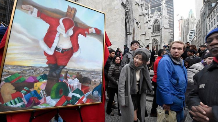 В канун католического Рождества в центре Нью-Йорка установили вызывающую картину напротив Собора Святого Павла.