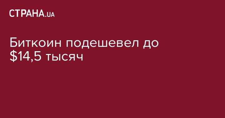 Биткоин подешевел до $14,5 тысяч
