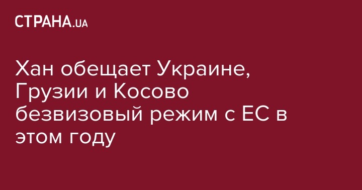 Еврокомиссар по вопросам расширения и европейской политики соседства Йоханнес Хан заявил, Украина, Грузия и Косово могут получить безвизовый режим с ЕС в 2016 году. Об этом передает Радио Свобода.