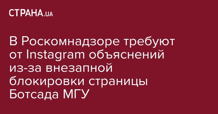 В Роскомнадзоре потребовали от руководства фотоблога Instagram объяснить причины блокировки аккаунта Ботанического сада Московского государственного университета им. Ломоносова (МГУ).