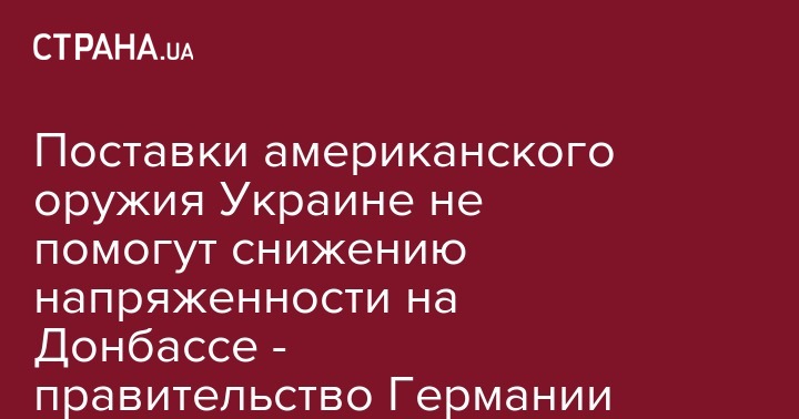 Поставки американского оружия Украине не помогут снижению напряженности на Донбассе - правительство Германии