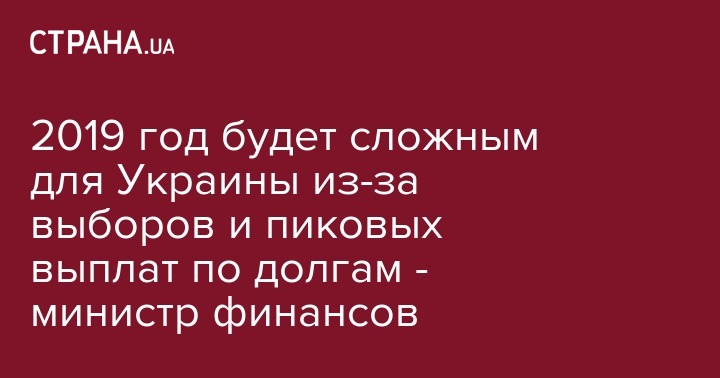 2019 год будет сложным для Украины из-за выборов и пиковых выплат по долгам - министр финансов