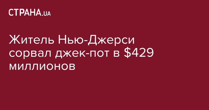 Житель американского Нью-Джерси сорвал джек-пот в лотерее Powerball на сумму $429 млн. Об этом сообщает Reuters.