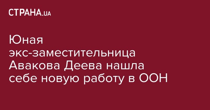 Экс-заместитель Авакова по вопросам европейской интеграции Анастасия Деева, уволенная в декабре, нашла новую работу в ООН. Об этом она сообщила на своей странице в Facebook.