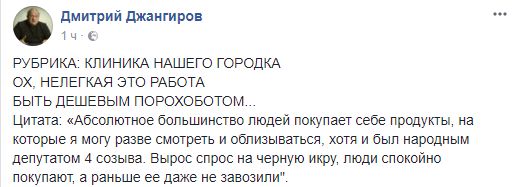 Депутат Виталий Чепинога смеется над политиком: " Тарас Чорновил: "Я вижу по своему магазина на Позняках, что абсолютное большинство украинцев может себе позволить и уже покупает черную икру" ... Это перец!"