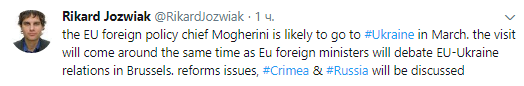 Верховный представитель ЕС по иностранным делам и политике безопасности Федерика Могерини собирается приехать в Украину в марте этого года.
