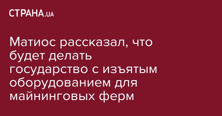 Матиос рассказал, что будет делать государство с изъятым оборудованием для майнинговых ферм