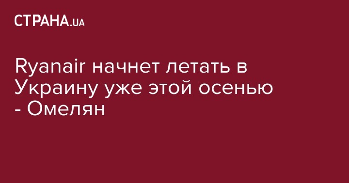 Ryanair начнет летать в Украину уже этой осенью - Омелян