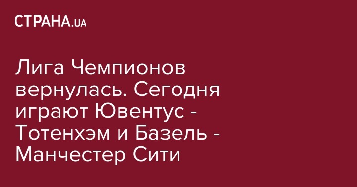 Лига Чемпионов вернулась. Сегодня играют Ювентус - Тотенхэм и Базель - Манчестер Сити