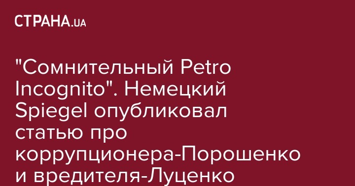 Авторитетное немецкое издание Spiegel опубликовало большую статью о коррупции Петра Порошенко и разочаровании в нем украинцев под заголовком "Сомнительный Petro Incognito". Материал доступен на сайте издания, также его перевело ИноСМИ.
