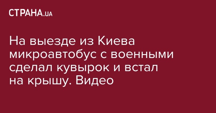 На выезде из Киева микроавтобус с военными сделал кувырок и встал на крышу. Видео