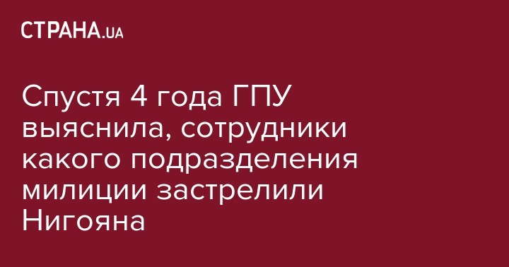 Генпрокуратура установила подразделение милиции, сотрудники которого застрелили первых Героев Небесной сотни - Сергея Нигояна и Михаила Жизневского. Об этом на брифинге сказал начальник департамента спецрасследований ГПУ Сергей Горбатюк, передает 112 Украина.