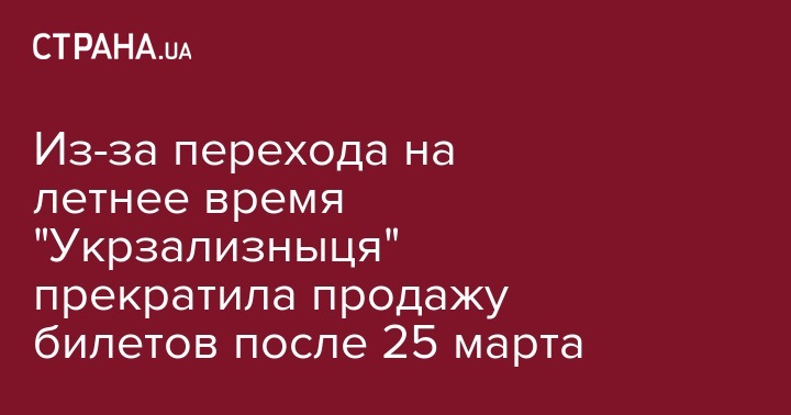 "Укрзализныця" приостановила продажу билетов на даты после 25 марта из-за изменение графика движения поездов в связи с переходом на летнее время.