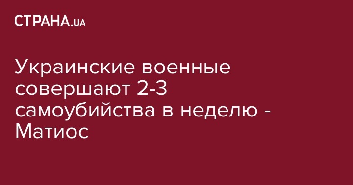 Заместитель генерального прокурора - главный военный прокурор Анатолий Матиос заявляет, что военнослужащие совершают в среднем от 2 до 3 самоубийств в неделю. Об этом он сказал в интервью телеканалу "112 Украина".