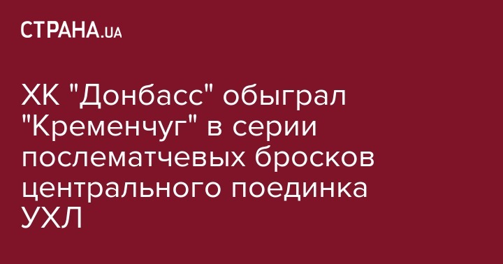 ХК "Донбасс" обыграл "Кременчуг" в серии послематчевых бросков центрального поединка УХЛ