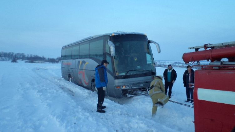 В воскресенье, 25 февраля, в Киевской области спасатели вытащили из снежного заноса автобус Volvo с иностранными туристами. Об этом сообщает пресс-служба ГосЧС.