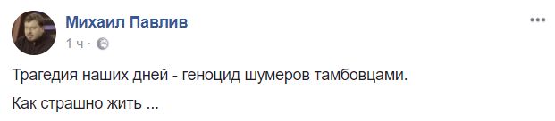 Политический эксперт Михаил Павлив шутит: "Трагедия наших дней – геноцид шумеров тамбовцами. Как страшно жить..."