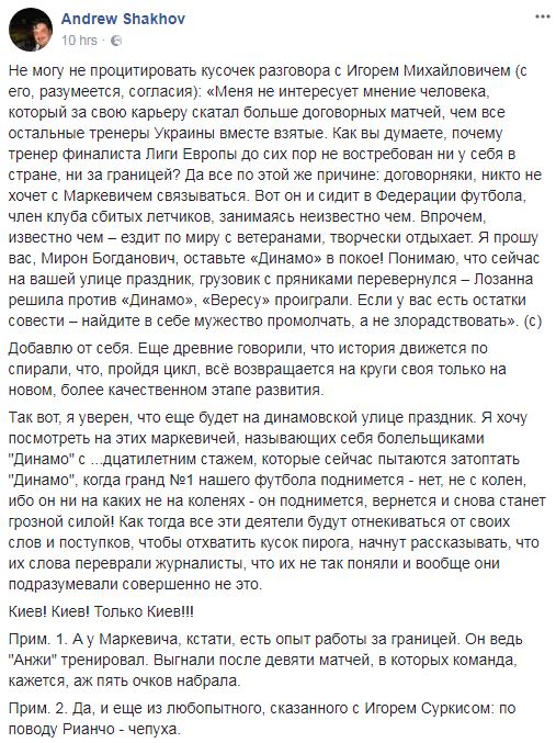 Президент "Динамо" Игорь Суркис опроверг переговоры с испанским специалистом Раулем Рианчо, работающим нынче в тренерском штабе национальной сборной Украины. Об этом на своей странице в Facebook написал журналист Андрей Шахов.