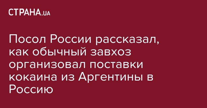 Посол России рассказал, как обычный завхоз организовал поставки кокаина из Аргентины в Россию