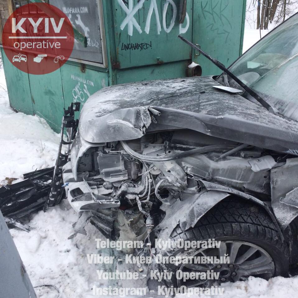 В Киеве Range Rove взлетел на заснеженной дороге и ударился в билборд
