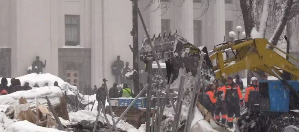 10:52 Демонтаж палаточного лагеря идет сейчас на улице Грушевского.