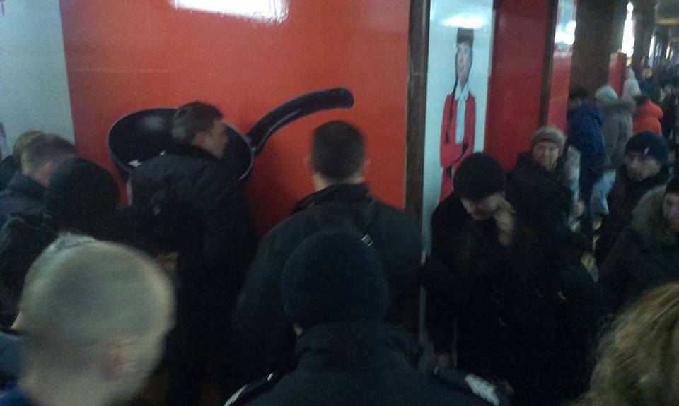 Сегодня на глазах многочисленных пассажиров станции метро "Театральная" в Киеве люди в форме, которые назвались сотрудниками СБУ, задержали и жестоко избили человека.