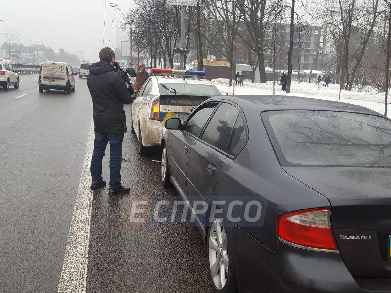 В Киеве на "Житомирской" водитель иномарки протаранил патрульное авто. Фото