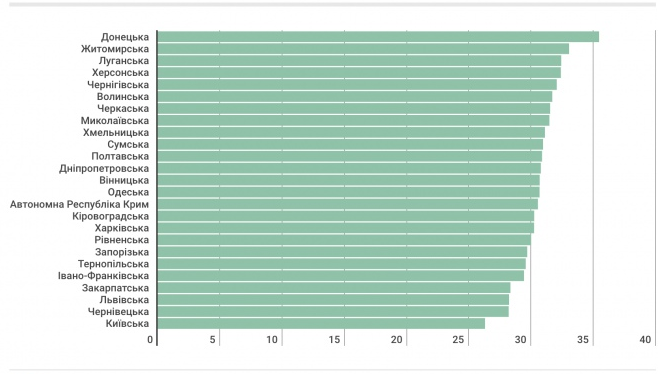 Больше всего женщин-директоров в Донецкой (35.4%), Житомирской (33%) и Луганской области (32.4%). Наименьшее количество - во Львовской (28.2%), Черновицкой (28.2%) и Киевской (26.3%) областях.