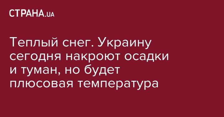 Как сообщает Укргидрометцентр, во всей западной части страны ожидаются дожди, температура воздуха днем +3...+9 градусов. На востоке пройдут дожди со снегом, сухо будет в Днепропетровской и Запорожской областях. Дневная температура в регионе  от 0 до +5 градусов. В центре осадки в виде снега и дождя, температура днем -1...+7.