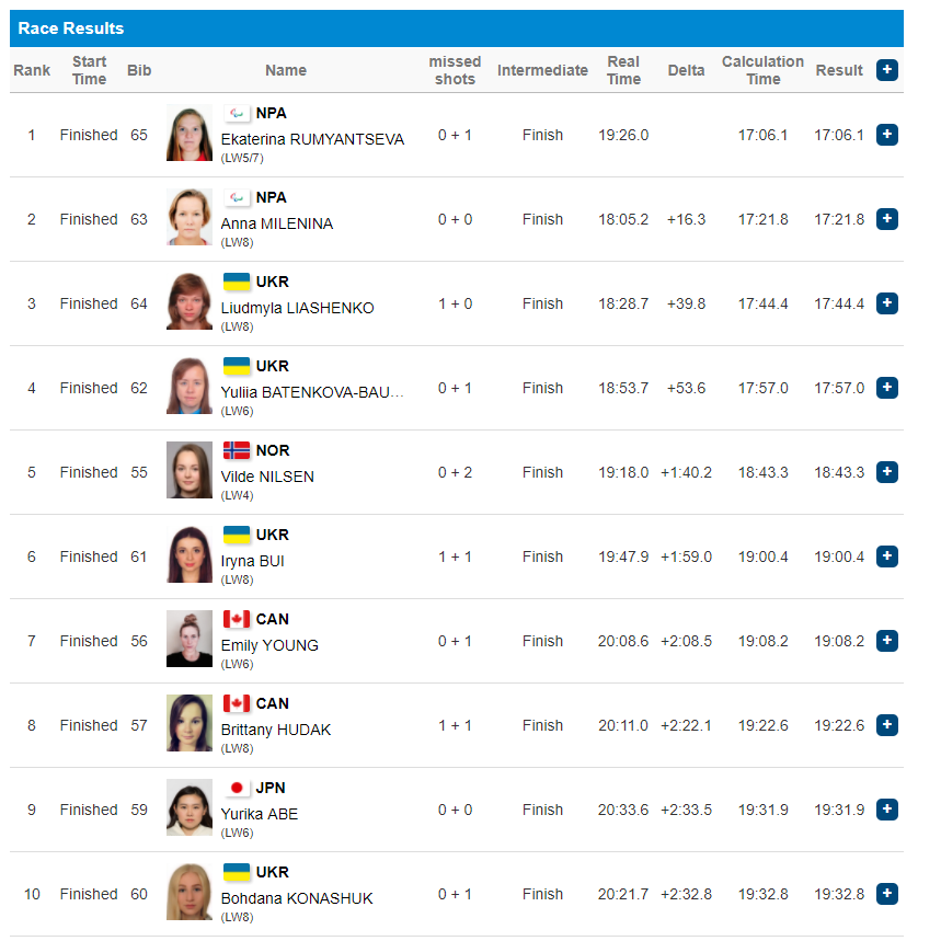 24-летняя спортсменка из Запорожья стала бронзовым призером в биатлонной гонке на 6 километров среди спортсменок с нарушением опорно-двигательного аппарата.