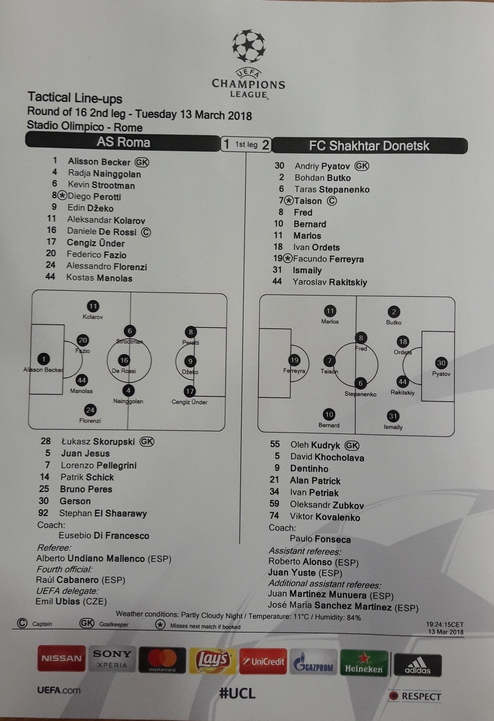 #ASRoma #UCL #RomaShakhtar pic.twitter.com/4QPesjFg0S
