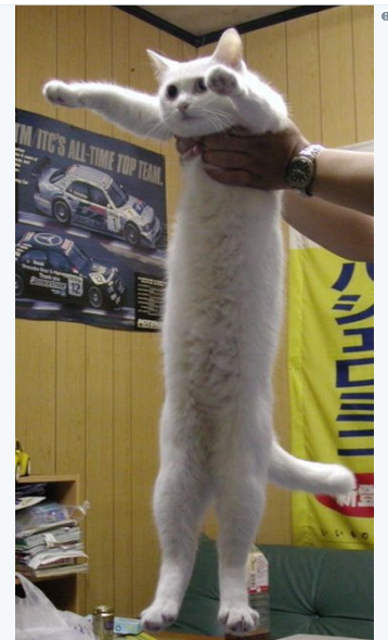 В Японии стал популярным новый флешмоб, по условиям которого пользователи фотографируют своих котов в полный рост. Некоторых животных специально "вытягивают" для достижения наибольшего эффекта.