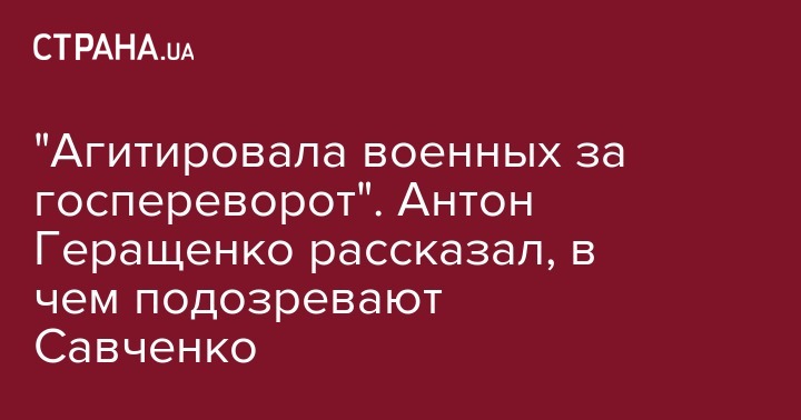 На вопрос журналиста о том, в чем именно подозревают Савченко в "деле Рубана", Антон Геращенко ответил: "Ее подозревают в соучастии и организации подготовки к перевороту. Савченко последний год ездила по воинским частям, занималась, скажем так, агитацией подрывной деятельности".
