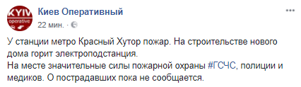 В четверг, 15 марта, в Киеве произошел пожар в районе станции метро Красный Хутор (зеленая ветка метро).