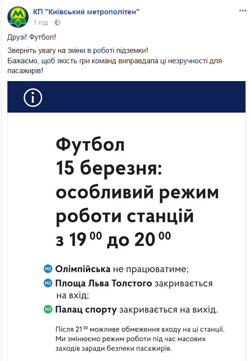 18.40 И традиционый футбольный "сюрприз" от киевской подземки. Важная информация для тех, кто сегодня пойдет на стадион поддержать свою любимую команду.