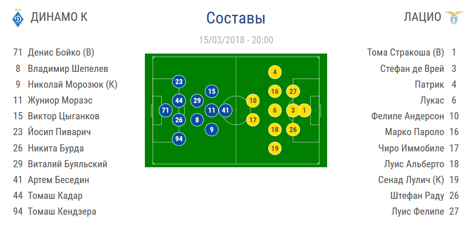 В четверг, 15 марта, киевское Динамо провело ответный матч в 1/8 Лиги Европы против Лацио и проиграло его со счетом 0 - 2.