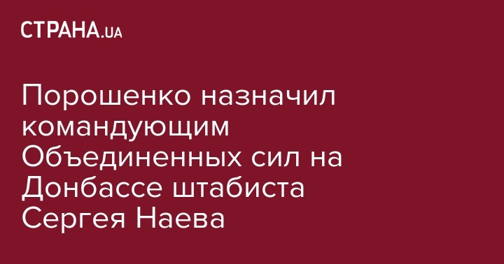 Президент Украины Петр Порошенко назначил генерал-лейтенанта Сергея Наева командующим объединенных сил.