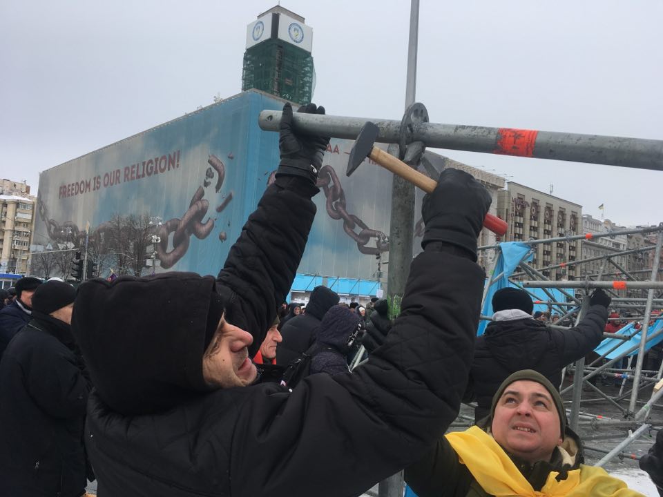 12:43  На Майдане активисты РНС разбирают "йолку" – металлоконструкции, установленные здесь ранее.