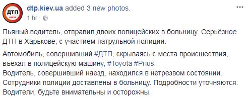 В Харькове пьяный водитель с женщиной и трехлетним ребенком протаранил патрульное авто